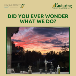 A long-term client contemplates retirement and needs projections evaluating pension options, plus Social Security and significant 401(k), IRA, taxable accounts and some rental properties. Planning a 30-year life after a successful aerospace engineering career is about more than the numbers. He’s doing some things that I’d like to do but won’t prioritize in my own life. So, I get a vicarious experience through him!