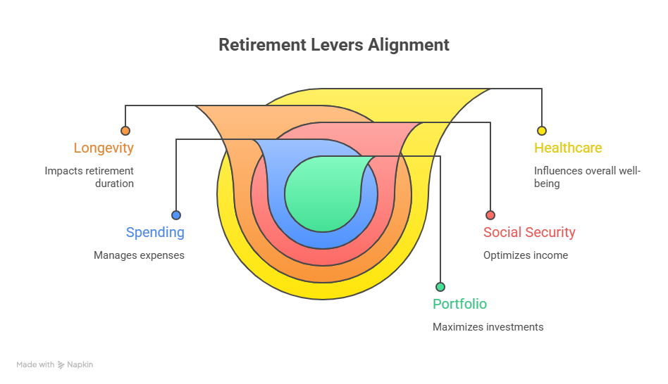 That’s because the decision is a lot more complicated than the finances, which are basically math applied to their situation. Ed and Vicki brought us all their financials: investment and banking statements, tax returns, Social Security estimates, property values and debts. We learned that Ed already outlived most of the men in his lineage, while both Vicki’s parents were still active into their 90’s. While they wanted to enjoy Ed’s perceived remaining healthspan, we adjusted levers to suit Vicki’s time horizon. Fortunately, she was the risk-taker of the two of them, so we could invest appropriately for the long term.